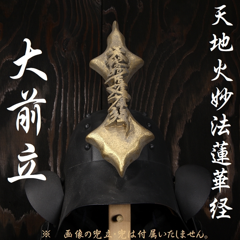 - 前立 木彫り 天地火妙法蓮華経 木製 金塗 前立て 二刀流 鶴首 付き 甲冑 兜 鎧兜 武具 検/ samurai armour 24k tenchi230430 k24