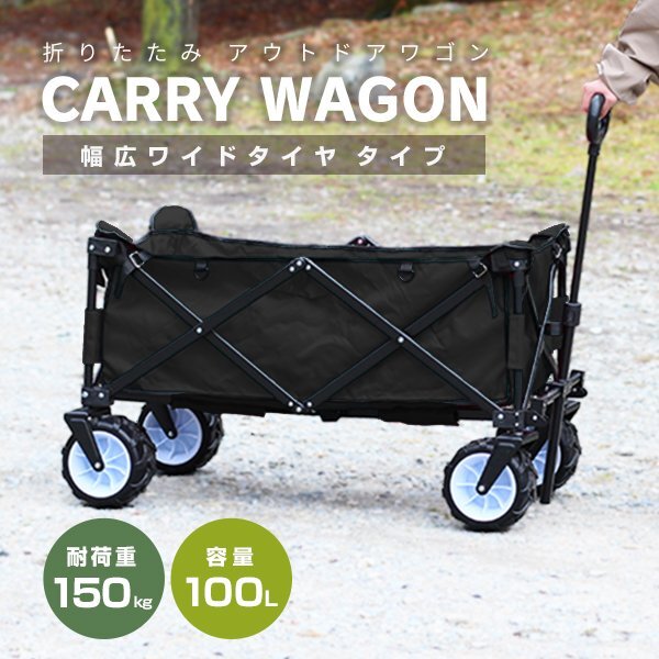 - 【ブラック】アウトドアワゴン 耐荷重150kg 容量100Lキャリー カート ワゴン 折り畳み マルチカート 軽量 レジャー 道具入れ mermont