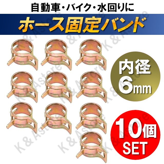 > ホース バンド クランプ 板クリップ スプリング 留め具 強力 ホース止め ゴムホース シリコンホース エアチューブ 燃料ホース 6mm 10個
