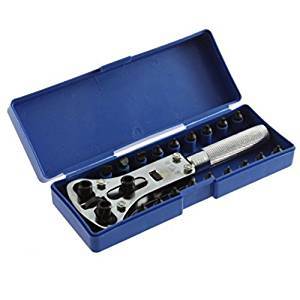 > 3点支持オープナー ケース付 防水式腕時計用 スクリューバック 18ビット 電池交換 裏蓋開閉工具 爪幅調整式 カバーケース外し 修理ツール