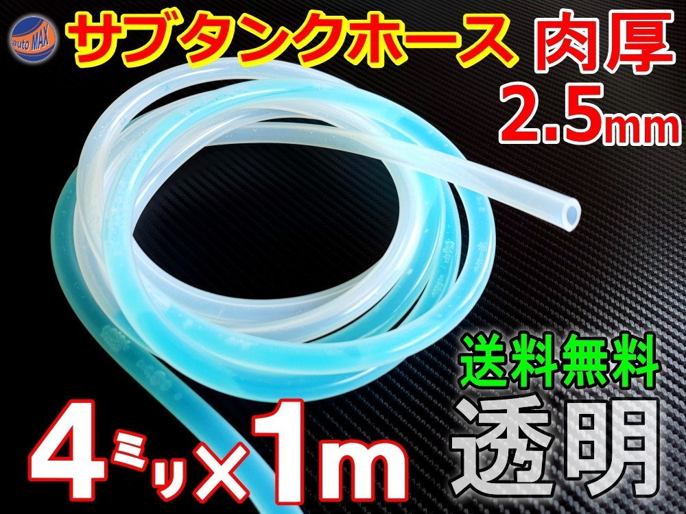 > ★シリコン (4mm) 透明 サブタンクホース 肉厚2.5mm 外径9mm シリコンホース 耐熱 汎用 内径4ミリ Φ4 クリア 半透明 乳白色 0