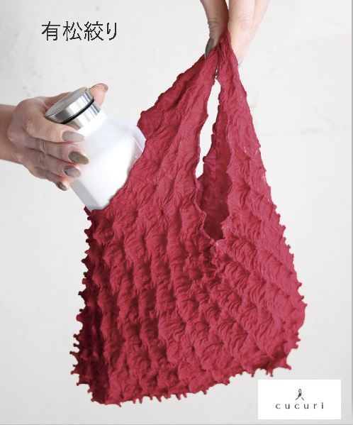- 新品 送料無料 有松絞り cucuri エコバッグ 赤 絞りバッグ くくり 有松絞 くしゅくしゅバッグ コンビニバッグ 伝統工芸 ククリ