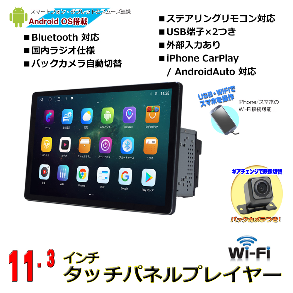 - 2DIN11.3インチタッチパネル+170度バックカメラセットRAM6GB+ROM128GB Android10.0WiFi ラジオ iPhone Carplay android auto