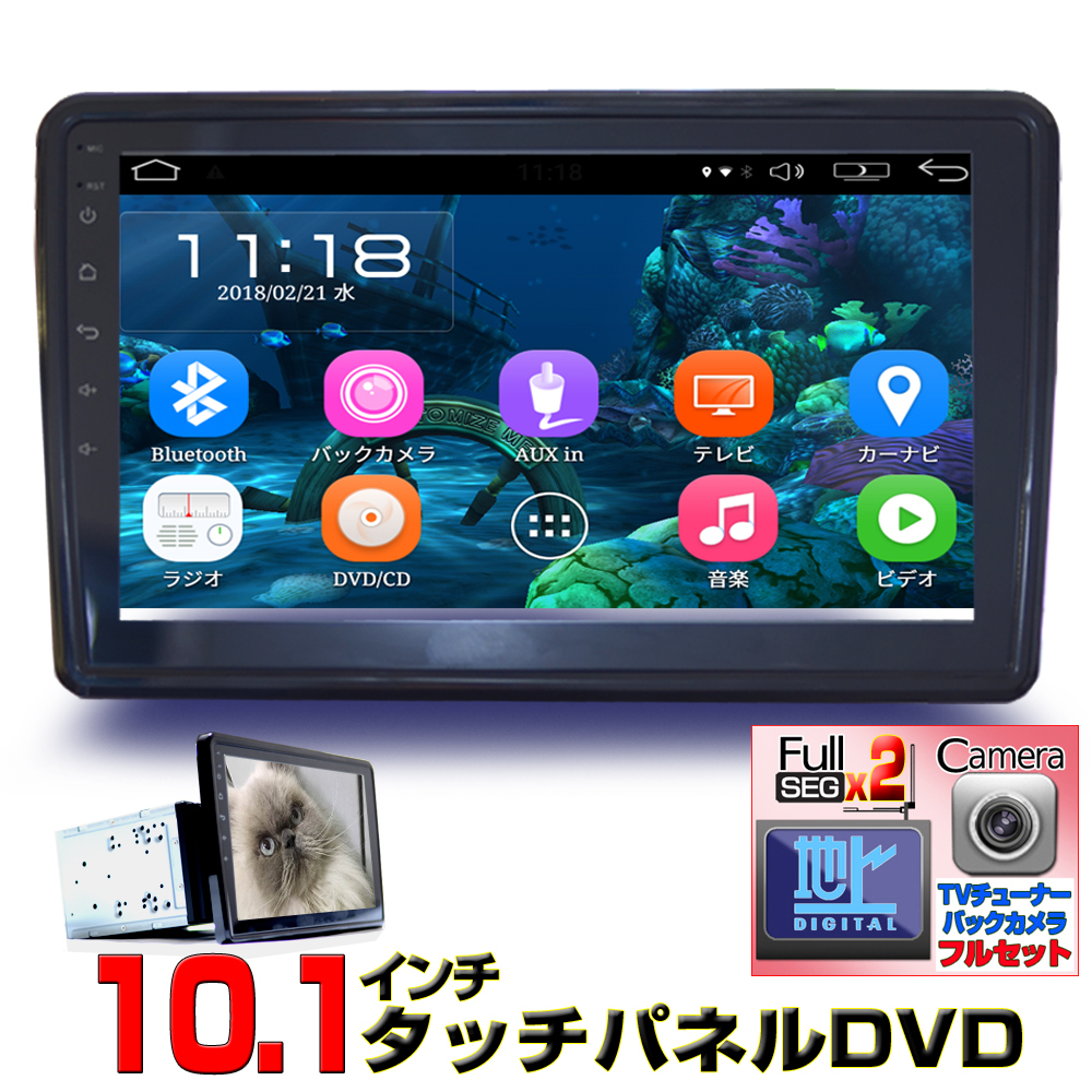 車載 カーナビ 2DIN 10.1インチDVDプレーヤー 地デジCPRM対応 VRモード Android9.0 ラジオ SD Bluetooth内蔵 16GBHDD アンドロイド スマートフォン iPhone WiFi 無線接続【一年保証】+専用地デジ2 x 2フルセグチューナーセット+170度バックカメラセット「D482c」