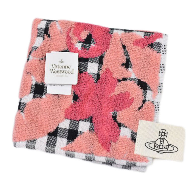 > ヴィヴィアン ウエストウッド タオルハンカチ 1枚 レディース ブランド ピンク 黒 ブラック 白 チェック ロゴ 女性 婦人 ハンドタオル