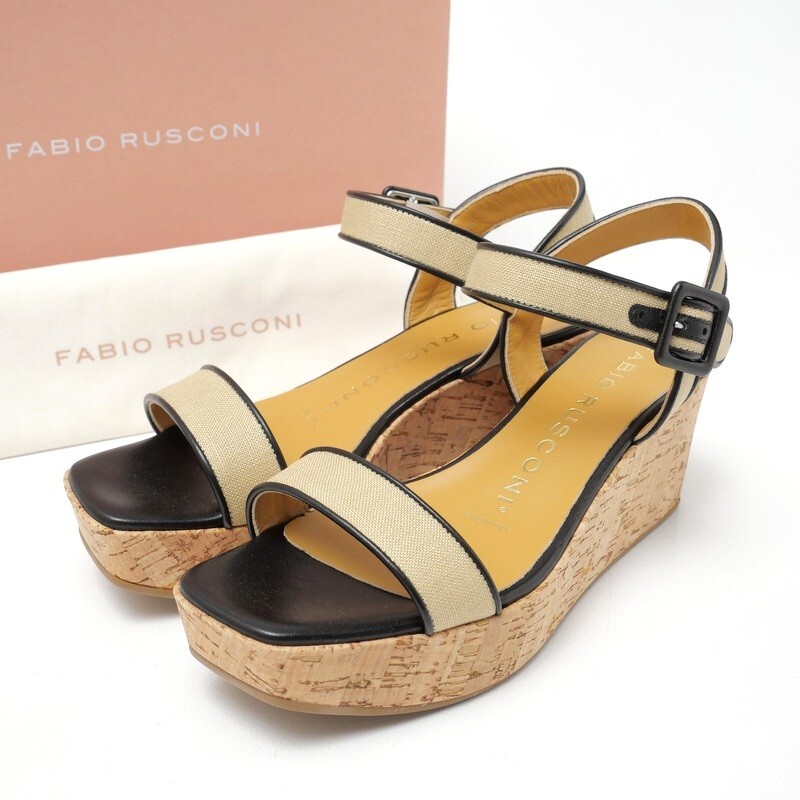 - TE9267*《未使用/定価3.4万円》ファビオルスコーニ*コルクウエッジ ストラップサンダル*リネン×レザー*37(23.5cm相当)*イタリア製
