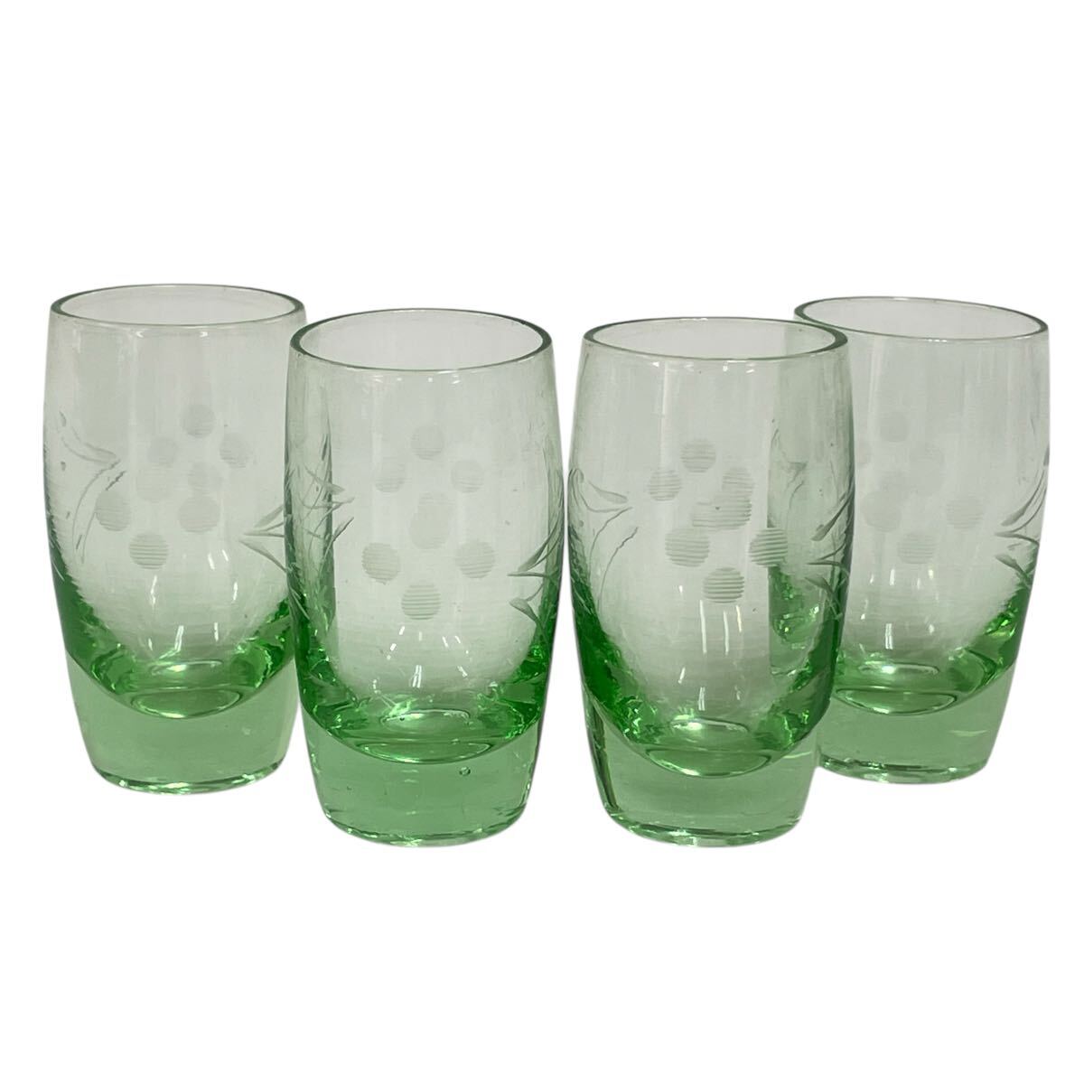 > ショットグラス カラーグラス 花弁草様付きリキュールウォッカ梅酒に 4個セット【高さ約6㎝】 花柄 コップ グリーン 緑 #0598-005R5