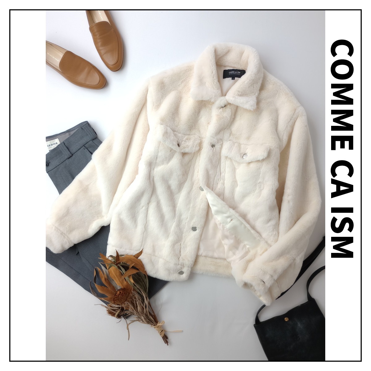 > COMME CA ISM「ドラマティックになる一枚。」フェイクファー ブルゾン ジャケット 羽織 アウター L アイボリー(26M+2719)