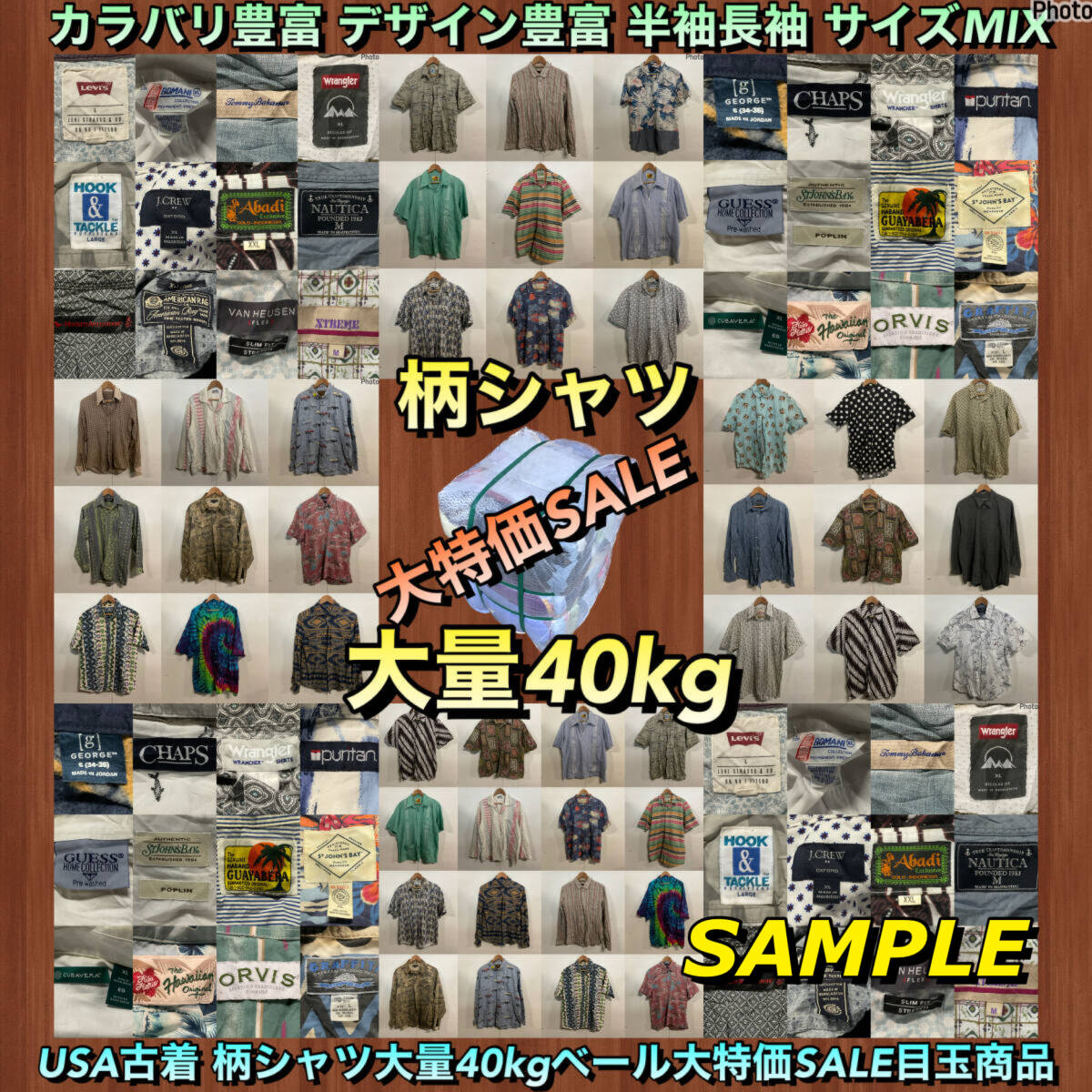 - 【T1493】★超目玉★ アメリカ古着卸オススメ柄シャツMIX大量40kgベール目玉商品 半袖長袖 デザイン豊富 ブランド豊富 サイズMIX