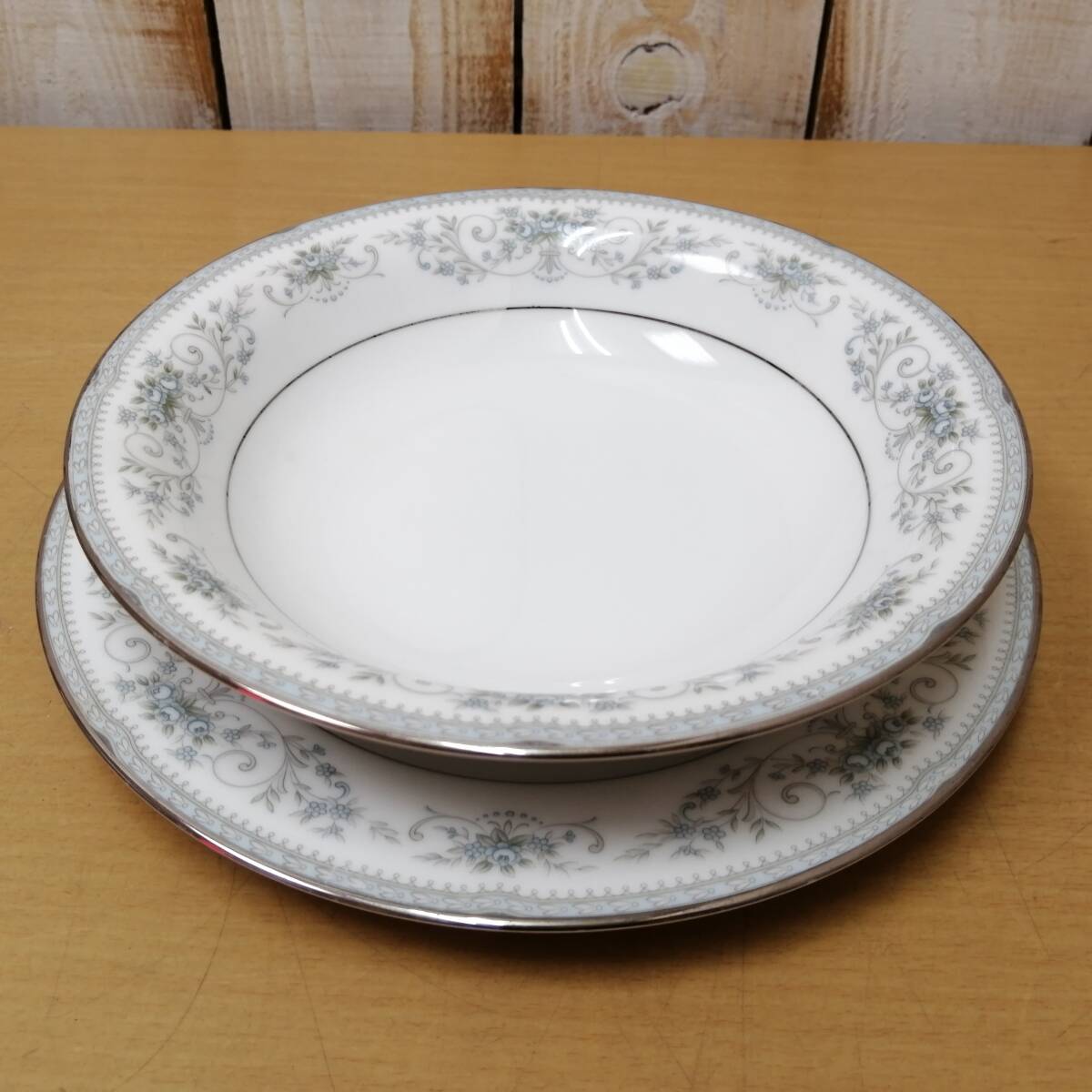> 〇25100105 Noritake ノリタケ COLBURN コルバーン プレートセット ディナープレート スープ皿 銀彩 ホワイト×ブルー ビンテージ