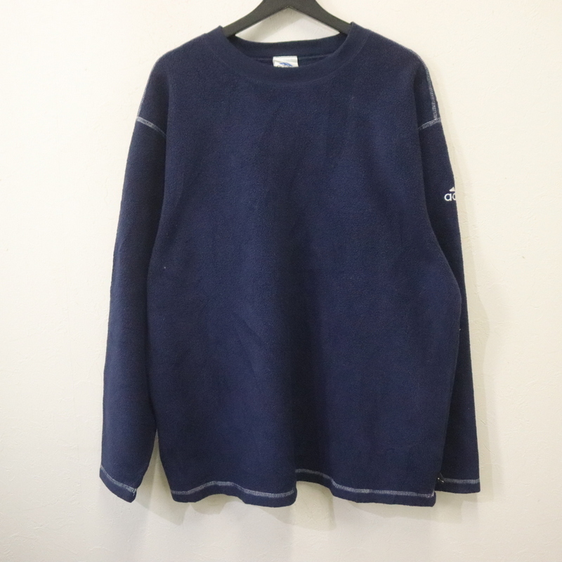 > W845 90sビンテージ アディダス adidas 長袖フリーストップス■1990年代製 表記Lサイズ ネイビー 刺繍 パフォーマンスロゴ アメカジ