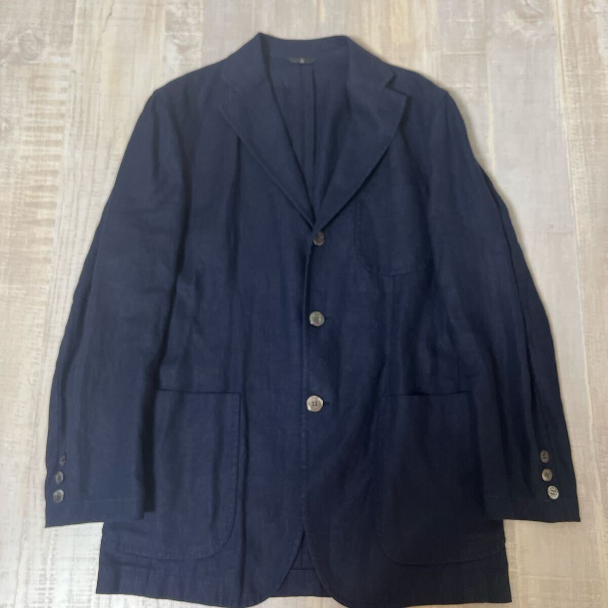 - 【未使用級 日本製 麻100%】LANVIN COLLECTION リネン 3B テーラード ジャケット ランバンコレクション 44 ネイビー 紺 トラッド ブレザー