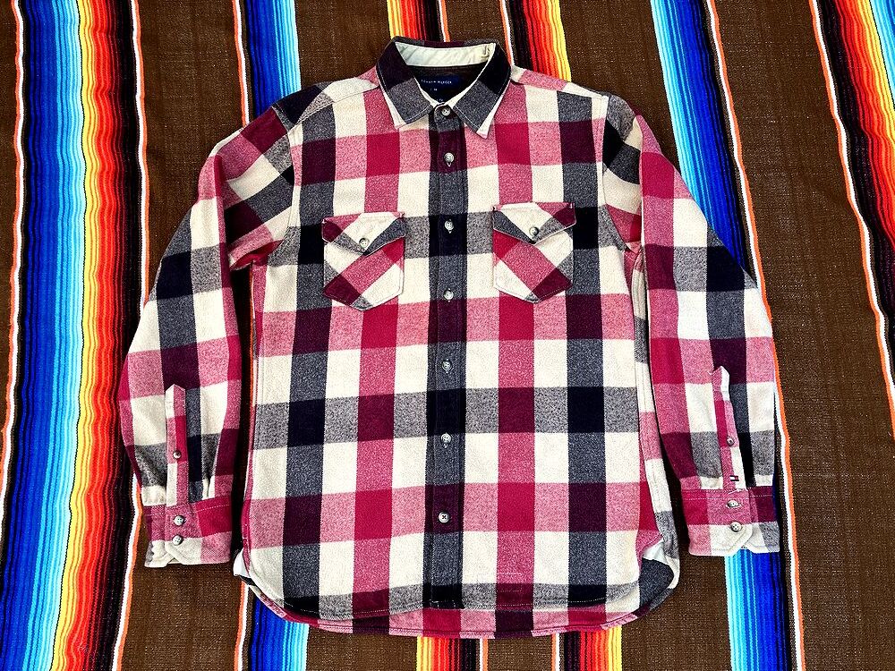 - ◇TOMMY HILFIGER トミーヒルフィガー CUSTOM FIT ヘビーネル ネルシャツ Mサイズ マチ付き◇検索 フランネル 古着 ビンテージ