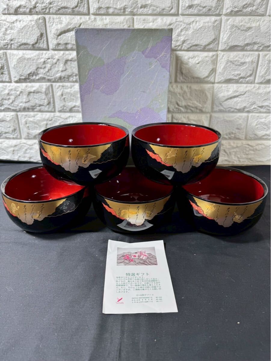 - HS827s80 中古 山中漆器 白河 多様椀揃 5客 YM97-2