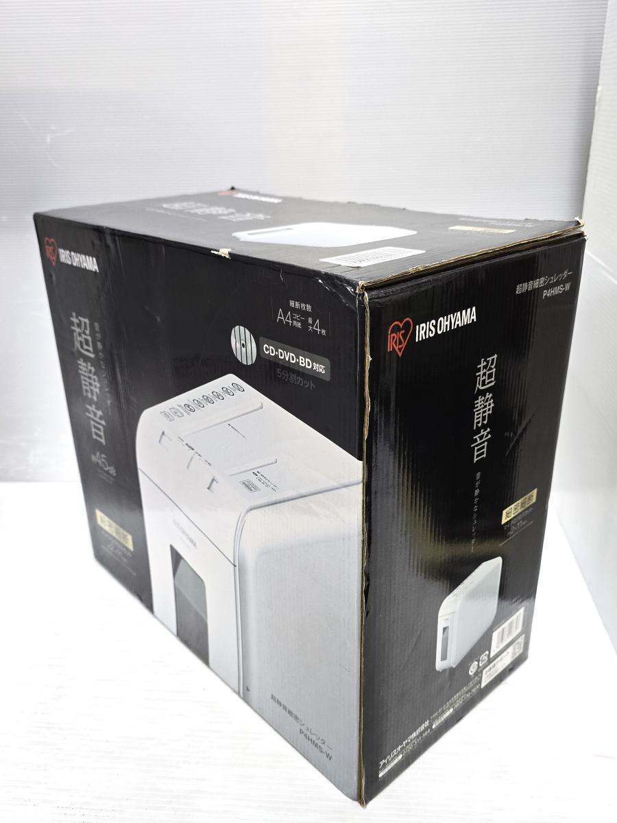 > 【中古未使用品】 アイリスオーヤマ IRIS OHYAMA 超静音細密シュレッダー P4HMS-W 2021年製 ホワイト ○YR-19386○