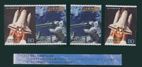 > 日本人宇宙飛行士・初搭載NASA スペースシャトル エンデバー号☆連刷・記念切手☆【未使用】2種・4枚セット