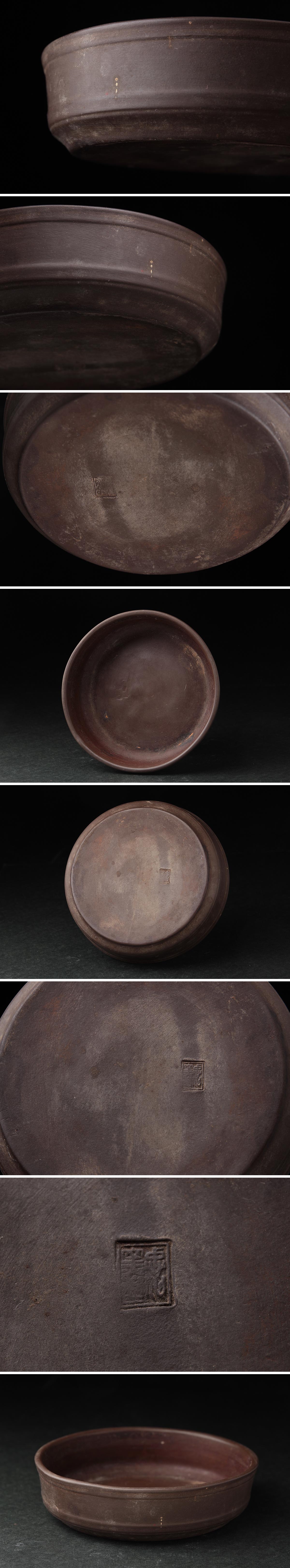 - JP784 時代【忠信窯製】紫砂 紫泥 急須台・受け皿 径10.8cm・紫砂小皿 茶具 茶器 煎茶道具