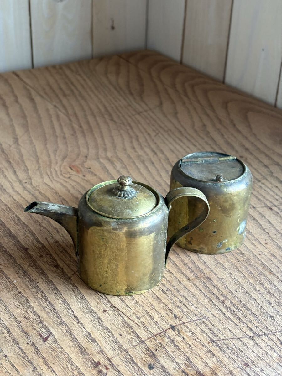 - 真鍮 油差し 燭台 灯器 骨董 古道具 当時物 アンティーク 急須