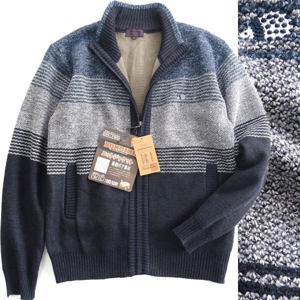 - 新品 CHUBEI チュウベイ 裏ボア ボーダー ニット ブルゾン L 紺 【CH134002_79_L】 秋冬 メンズ 裏暖 裏起毛 ボンディング