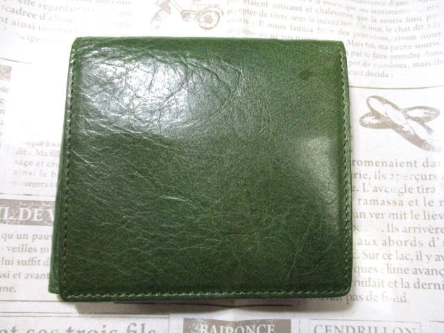 - 訳あり 新品 財布 メンズ 三つ折り 札ばさみ ブランド コンパクト 本革 牛革 イタリアンレザー グリーン