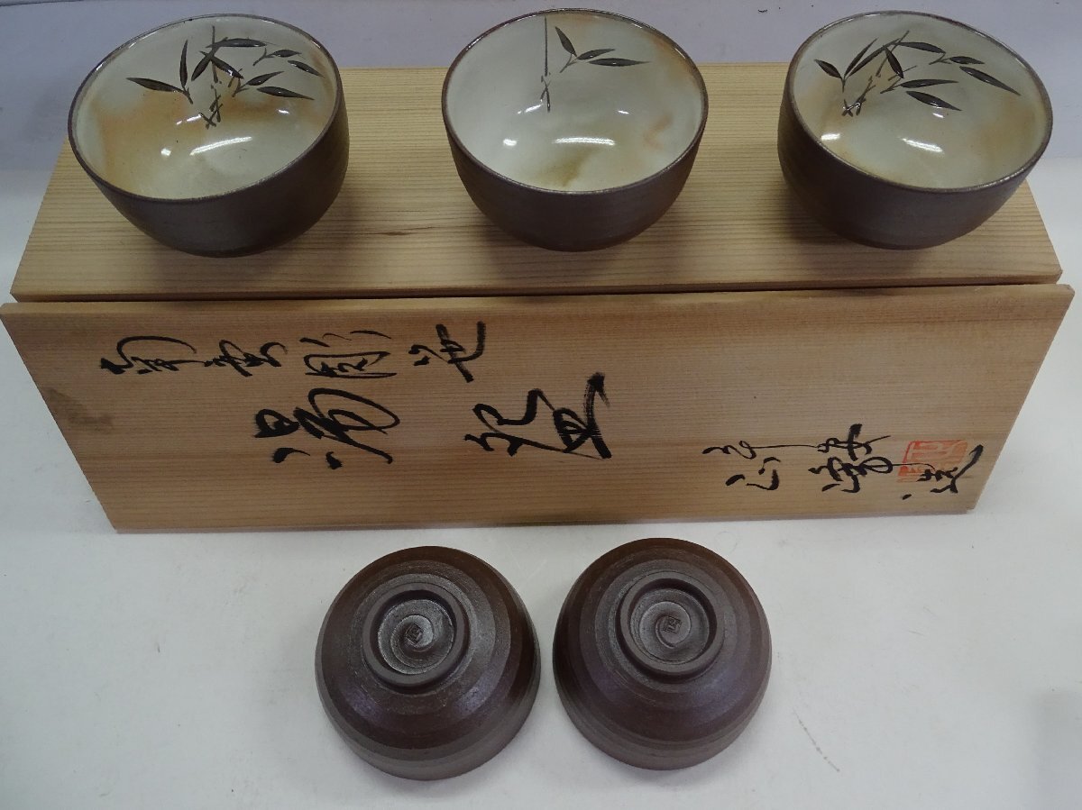 > ・品名: 南竜彫笹湯呑(5個セツト) ・作者: 平安正峰造 ・NO-R6-11-3.8