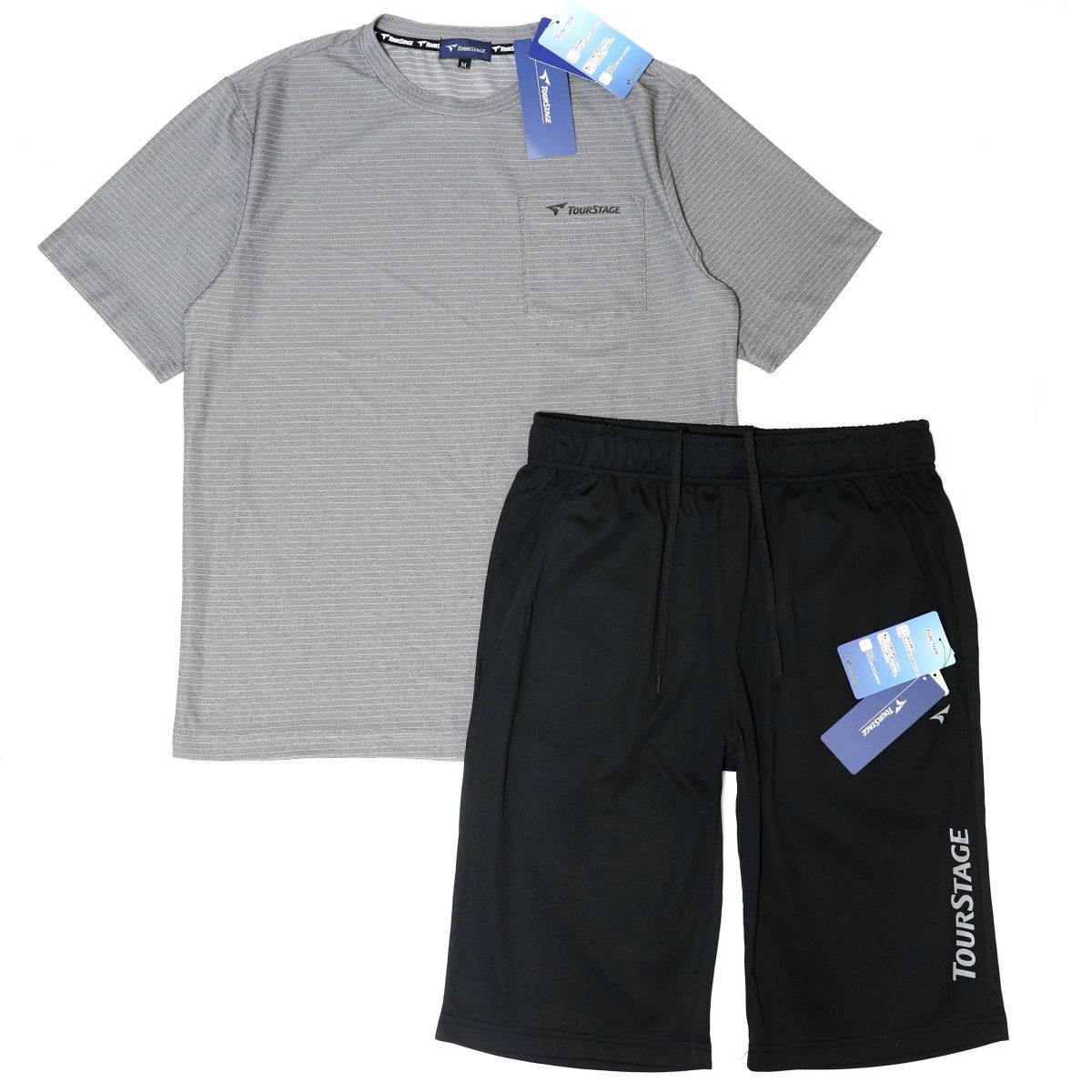 > ★ブリヂストン ゴルフ GOLF ツアーステージ 新品 吸水速乾 Tシャツ パンツ 上下セット SET 灰黒 L [SET1252209C2TS-12-L] 一 五 弐★QWER