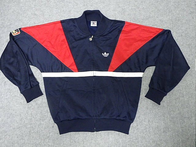 > アディダス adidas ATP ジャージ トラックジャケット サテン ヴィンテージ ’80年代 S(160) デサント 日本製 ネイビー美品