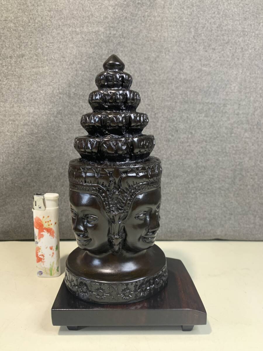 - 13M 彫刻 仏像 観音 四面観音 材質不明 唐木台付 茶道具 書道具 盆栽具 華道具 工芸品 美術品