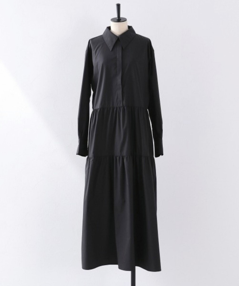 > LOWRYSFARM yuw ティアードシャツワンピース black sizeМ 新品タグ付シワ軽減 高品質 洗濯OK 両側ポケット付 ミリタリーなきれいめワンピ