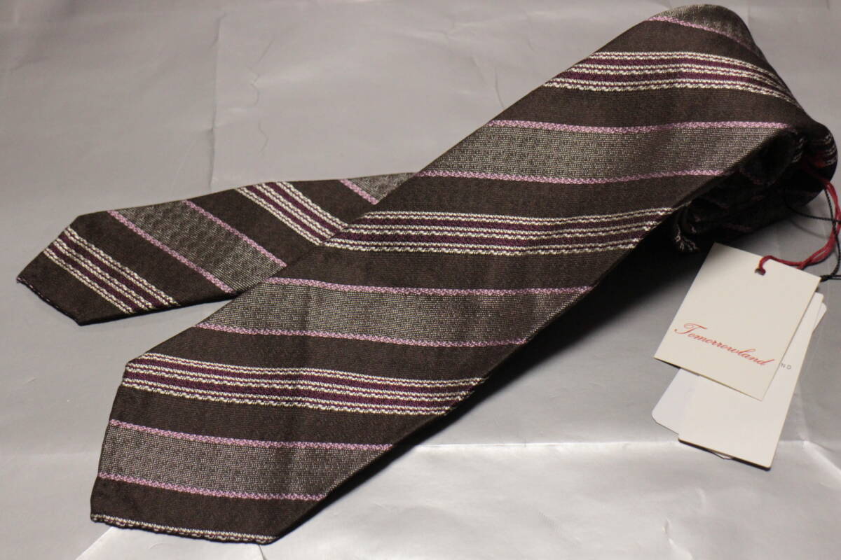 > アットヴァンヌッチ*トゥモローランド別注新品ネクタイ超華麗モダンブラウン*シルバー*パープル*ラベンダーレジメン極上セッテェピエゲ