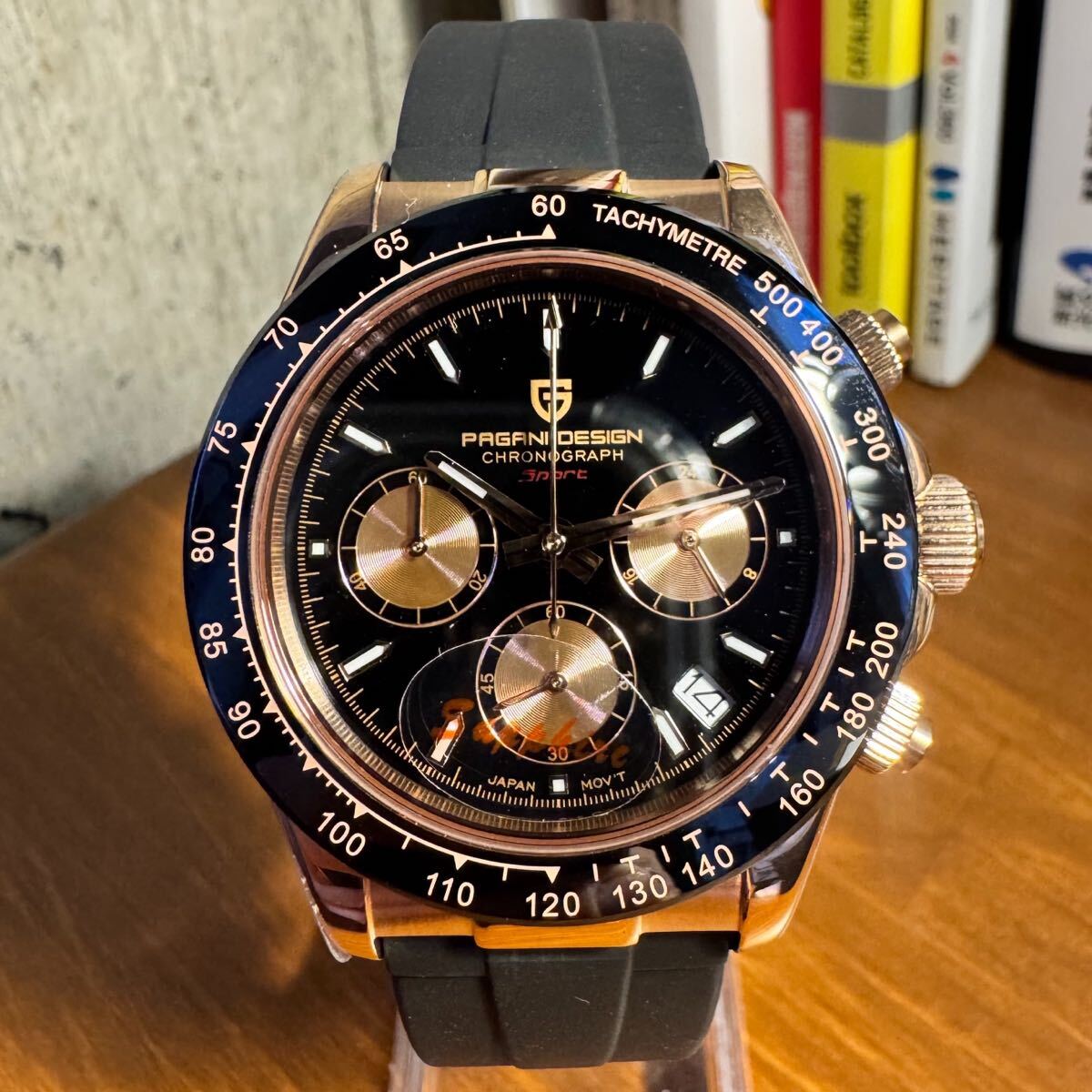 > 【新品・高品質】メンズ腕時計 クロノグラフ ウォッチ ブラック×ゴールド 黒金 vk63 ラバーベルト クォーツ 蓄光