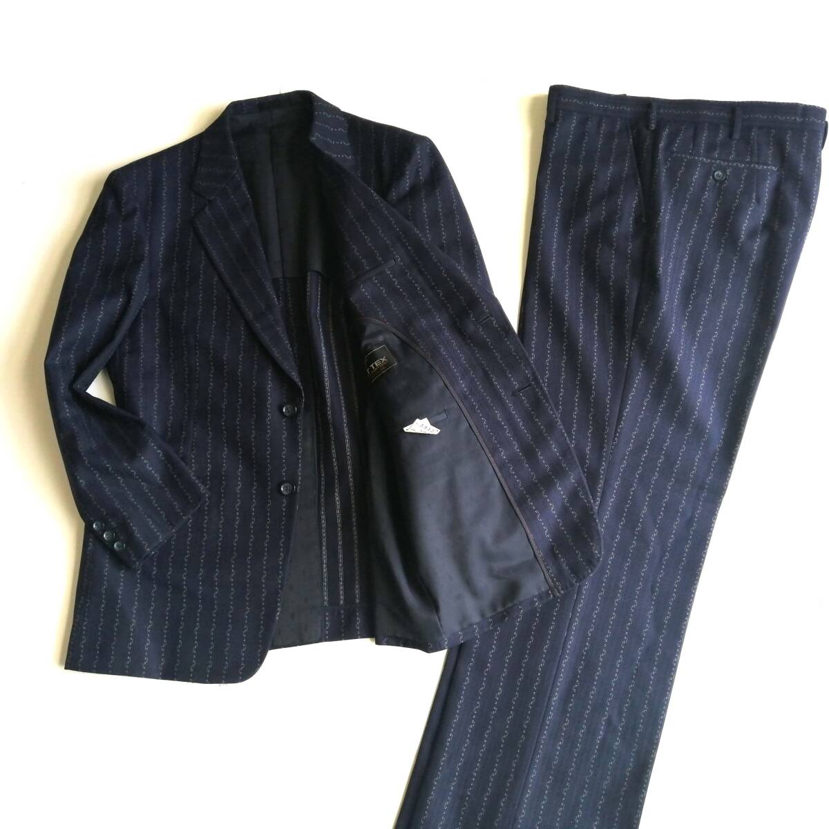 - ゆったりAB体 SUN ACE×GREAT TEX シングルスーツ ヴィンテージ レトロ (AB6 身長175-ウエスト88㎝相当25-1001fu13【4点同梱で送料無料】