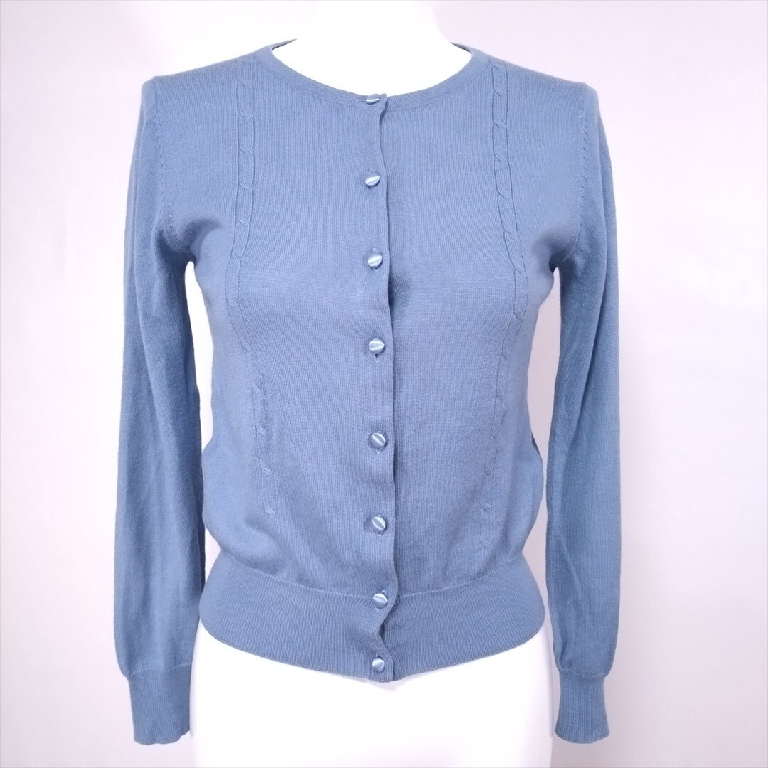 - KUMIKYOKU 組曲 ケーブル ニット カーディガン 長袖 くるみボタン ライトブルー 毛50