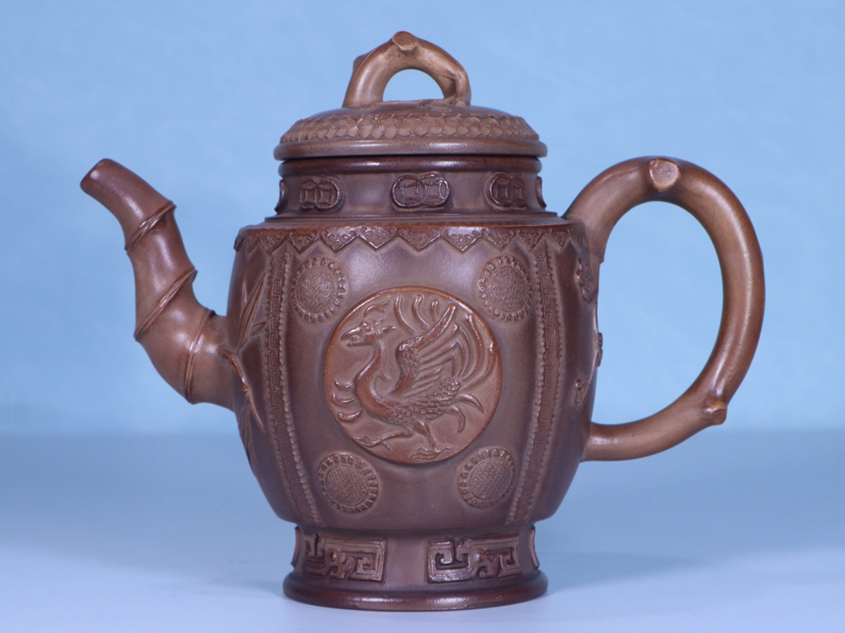 - ▽鴻▽清時代 邵瑞元製 歳寒三友紋茶壺 宜興紫砂 常滑 朱泥急須 煎茶道具 茶壷 時代物 中国古美術 骨董品