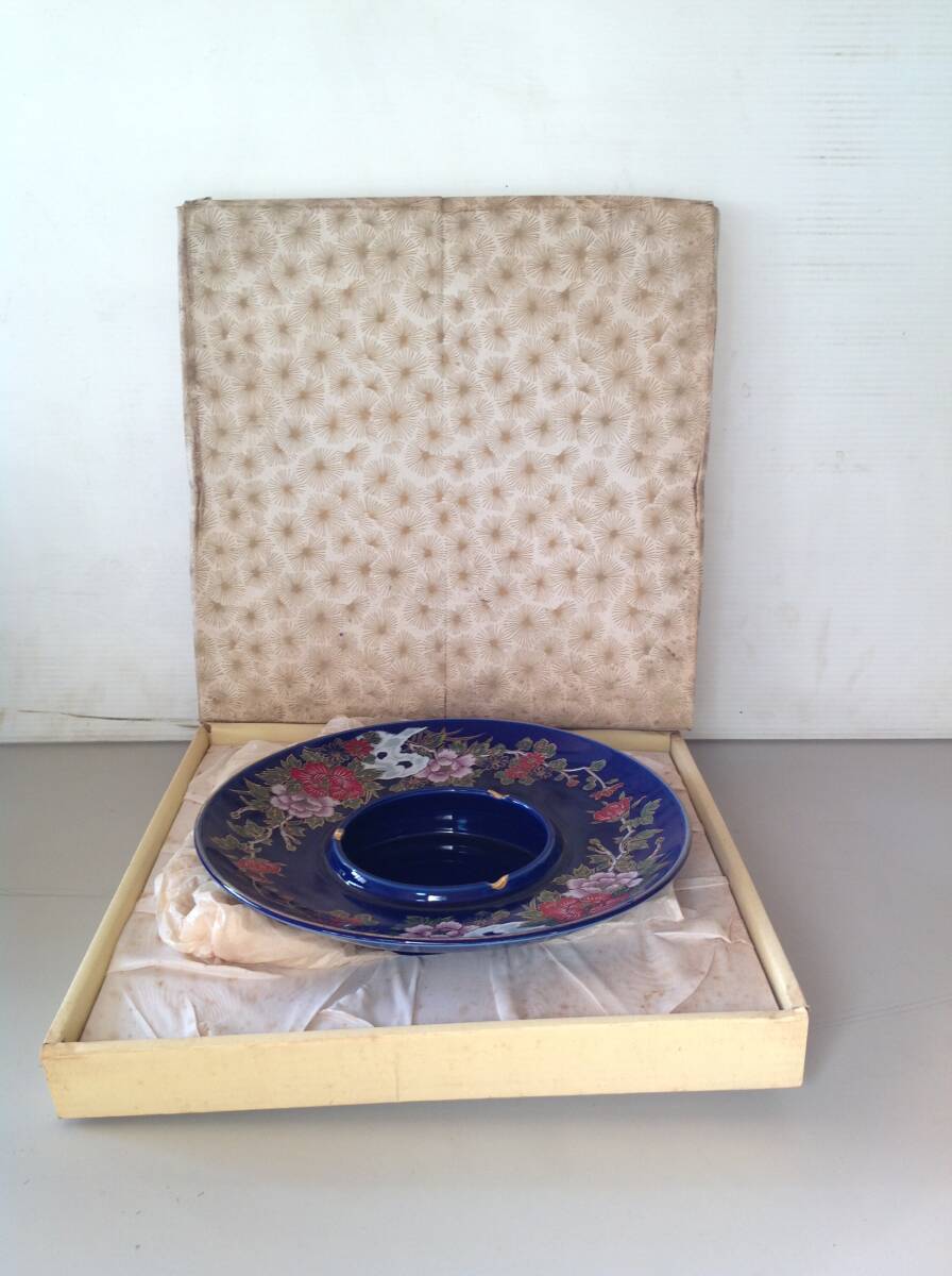 - *昭和レトロ 大型丸灰皿 九谷 明陶 瓷器 花柄 箱付 中古品/現状品*
