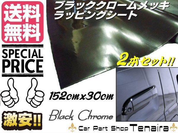 > ブラック クロームメッキ 2本 カー ラッピングシート カッティングシート 152cm×30cm DIY 鏡面ミラー 装飾 保護フィルム 送料無料/5