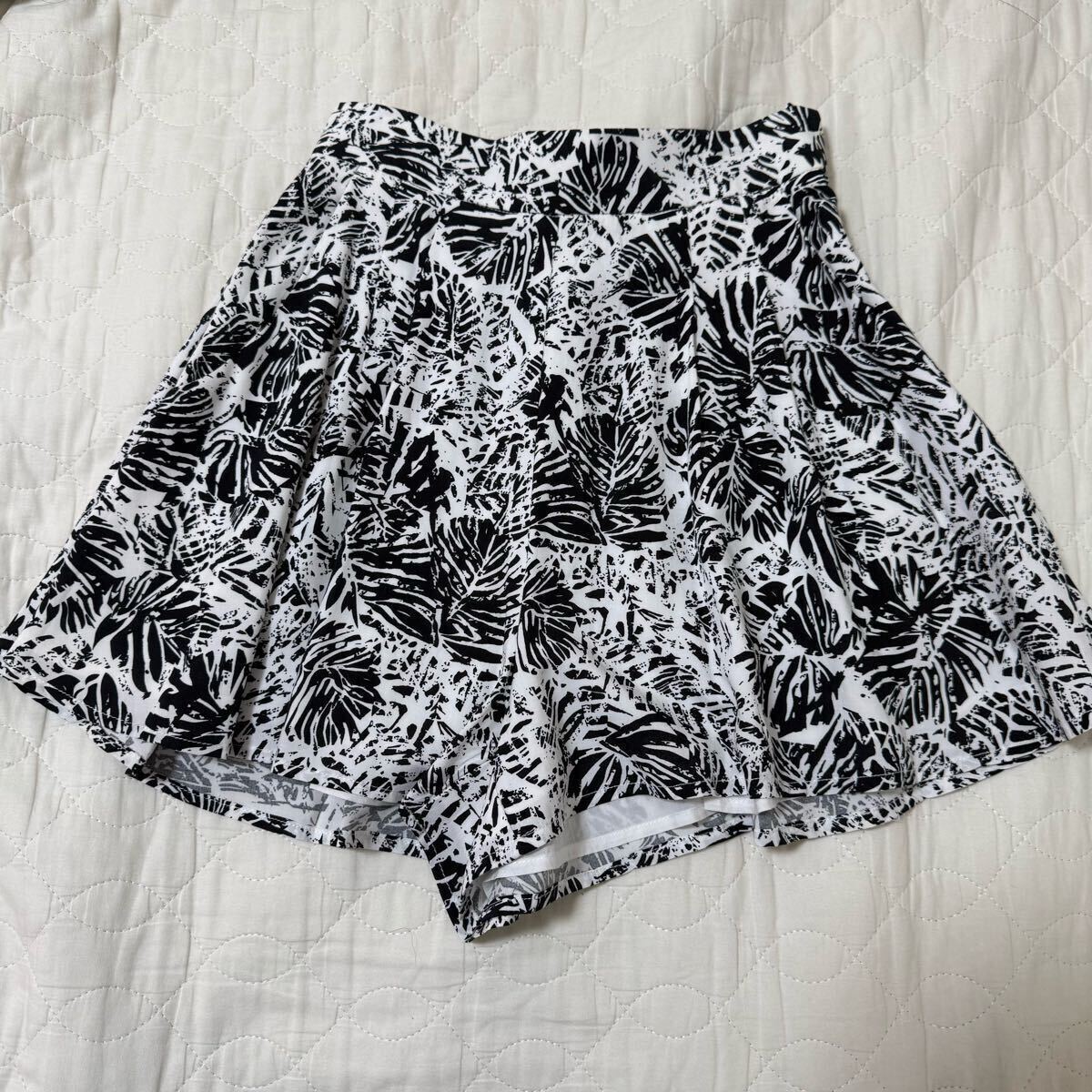 > 新品/SLY/スライ/キュロット/ハイウエスト/ショートパンツ/モノトーン/リーフ柄風/ブラック/ホワイト/サイズ0/小さいサイズ