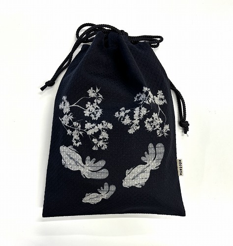 - [江戸てん]訳あり 刺し子信玄袋 刺子 抜染柄入り 綿100% 巾着 御朱印帳袋 金魚 ダークブラック 黒