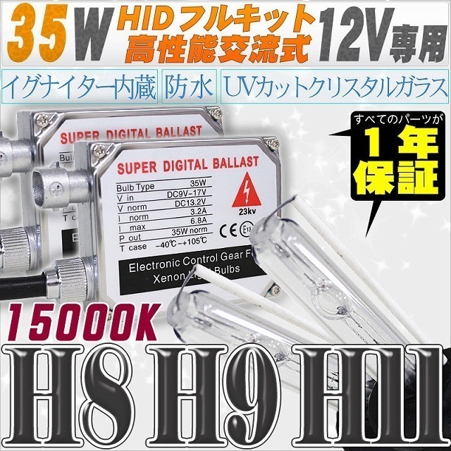 > 高性能 HIDキット 35W H11/H8 リレー付 15000K 【交流式バラスト&クリスタルガラスバーナー】