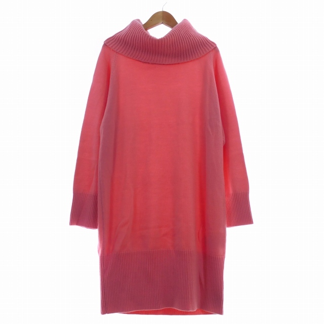 > ルスーク Le souk ニットワンピース ひざ丈 長袖 オフタートル ウール 無地 38 ピンク /T2 レディース