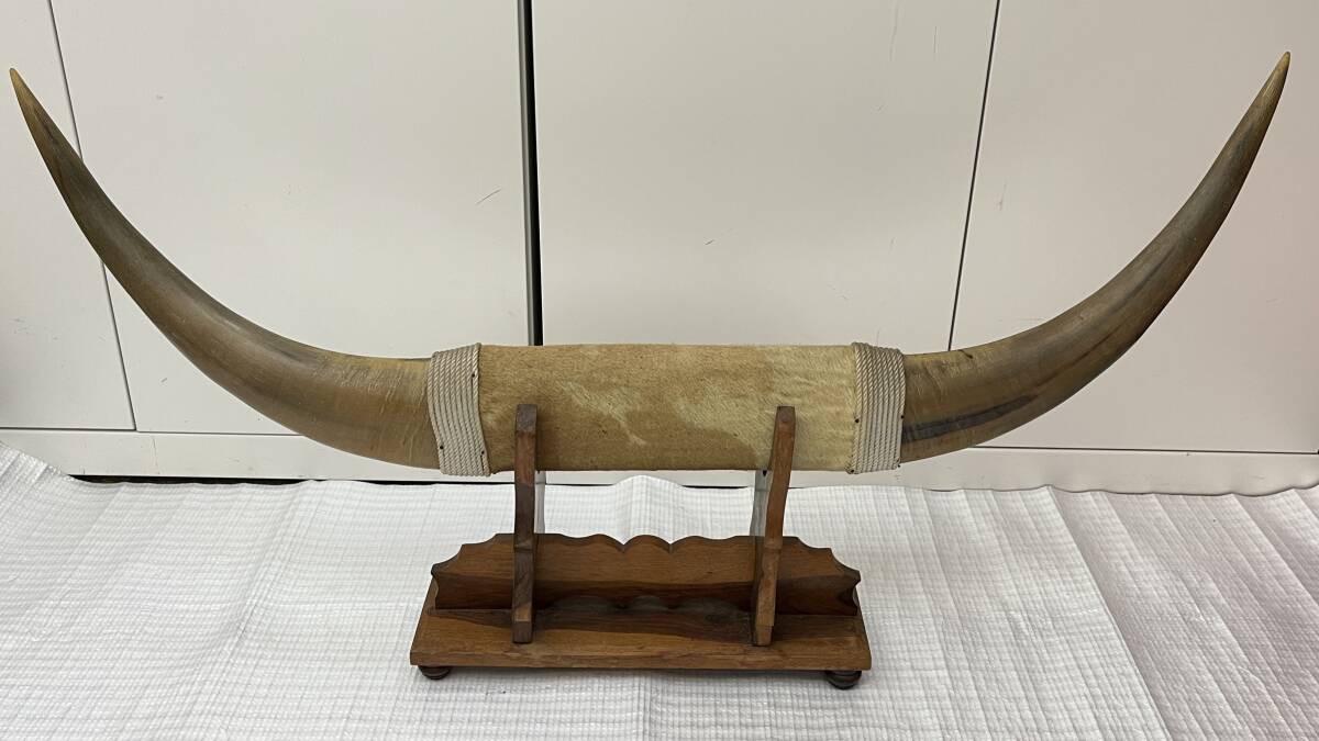> i5501HI 水牛 角 置物 台座付 工芸品 置物 飾り物 オブジェ インテリア コレクション レア 希少 約100×20×高さ56cm(台座含む)