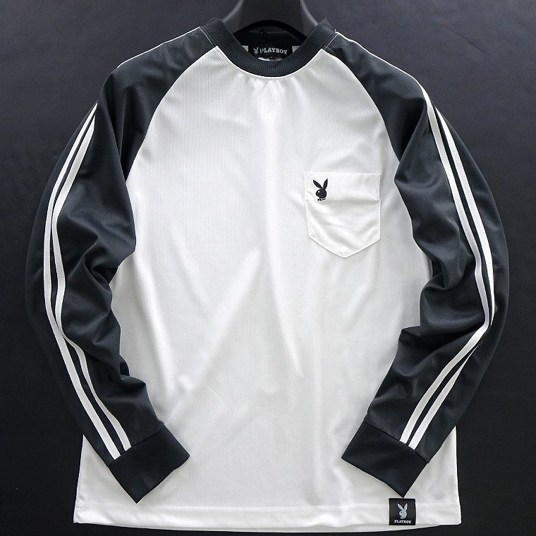 - 新品 プレイボーイ 25春夏 メッシュ ブリスター Tシャツ M 黒【PB1751029_99_M】 PLAYBOY 長袖 袖ライン カットソー ロンT ロングスリーブ