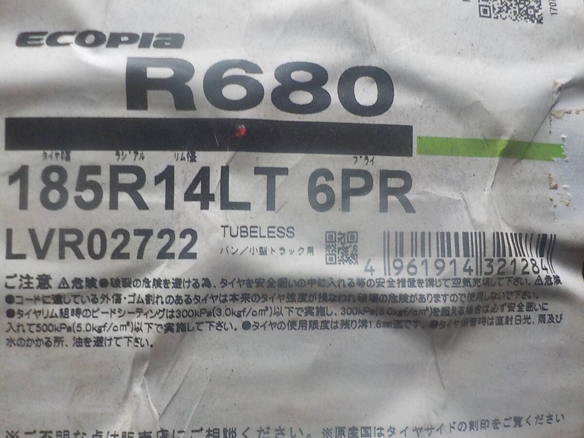 - 中古( 未使用品2017年製造)ブリヂストンR680 185R14LT 6PR 1本 日曜,月曜,祝日は定休日