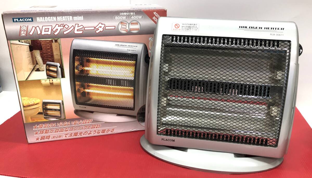 - 動作品 PLACOM 角型 ハロゲンヒーター ミニ PLM-30611 2段階切り替え シルバー プラコム