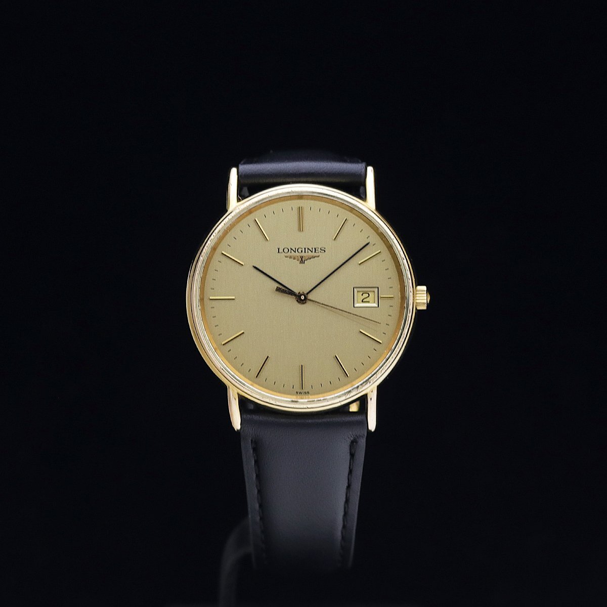 > 1円~ 良品 電池交換済 薄型 LONGINES ロンジン グランドクラシック L4.636.2 GP・SS メンズ クォーツ ゴールド文字盤 ベルト新品