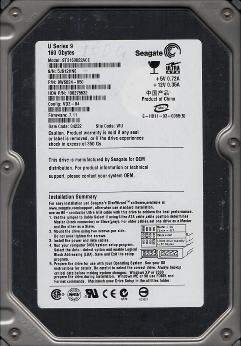 - Seagate ST3160022ACE 160GB ATA/IDE 5400rpm