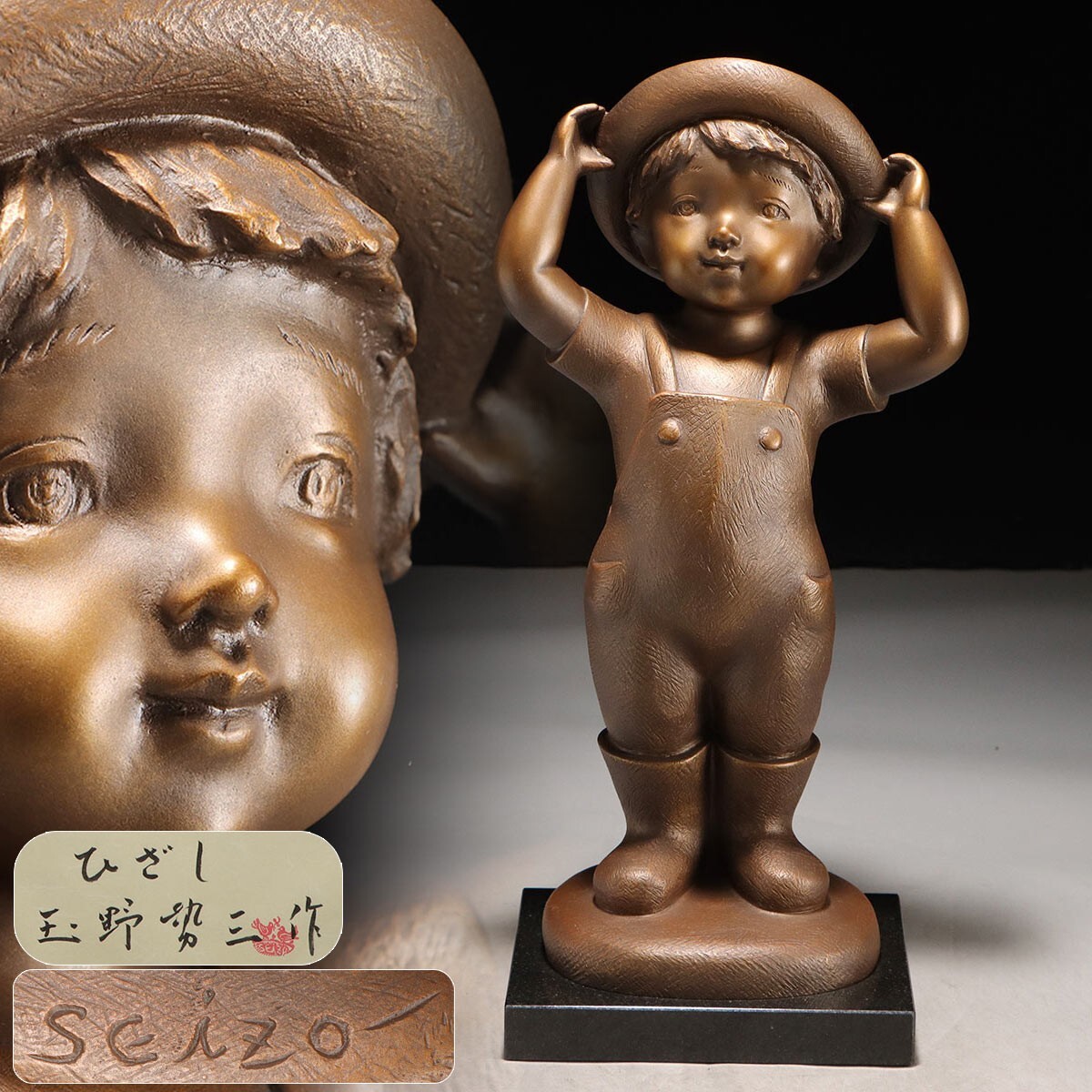 彫刻家 【玉野勢三】 「ひざし」 ブロンズ像 少年 童子 置物 高さ45.5cm 重量10.45kg 直筆サイン証有 の出品です。