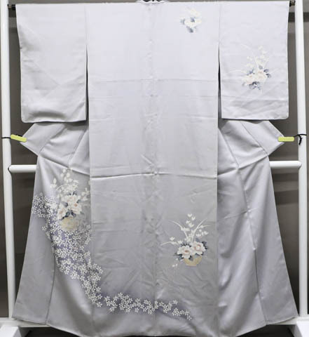 > 《京都一輝堂》【着物】付下げ 花植物文 身丈約160.5cm 裄丈約64.5cm 24z-5113