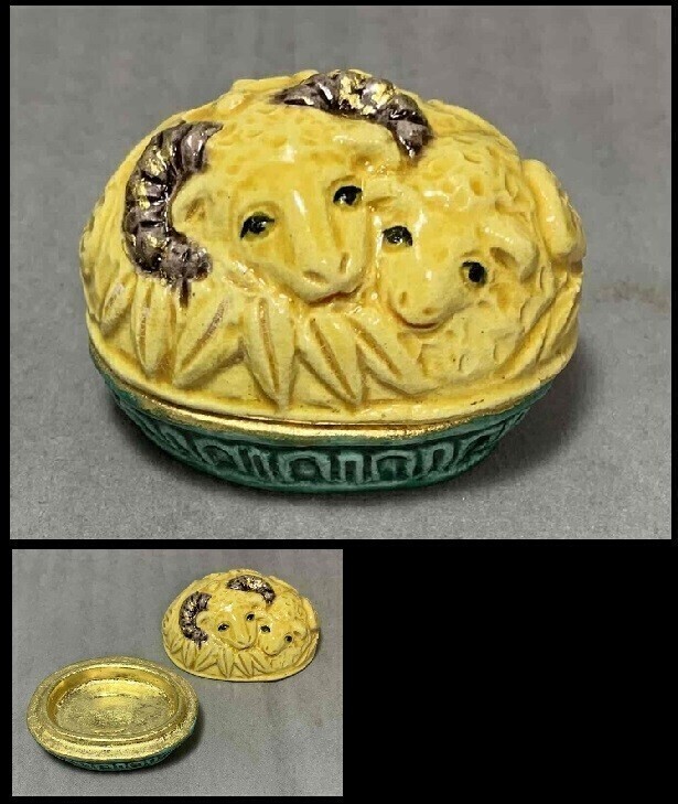 【藤】未香合 音羽窯 六兵衛窯 商品紹介 ご入札後のキャンセルは、お受けいたしかねます。 必ず慎重な入札をお願い申し上げます。 金彩に剥がれあります。 画像にて不明な点等がございましたら、お気軽にご質問下さい。 海外発送は一切対応致しません。 場合により早期終了をする事がございます、予めご了承下さい。 作者 音羽窯 六兵衛窯 サイズ 高さ 3.8cm 幅 5.1cm×3.9cm 多少の誤差はご了承下さい。 備考 当オークションは落札後、取引ナビにて宜しくお願い致します。 悪戯防止の為、新規の方は削除させていただく場合があります。 取引詳細 発送 ご入金確認後出来るだけ早く発送いたします。 お支払 yahooかんたん決済 その他 商品の傷等は明記しておりますが、小さな傷等で明記されていない部位があるかもしれません。 古美術品、古道具としての性質をご理解のうえ、ご入札のほどよろしくお願いいたします。 中古品のため、塵 ゴミはご了承のうえ ご入札ください。 機種やモニターにより色の差等が多少相違する状態もございます。ご了承下さい。
