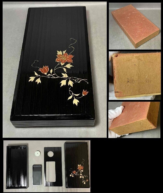 【藤】花の絵硯箱 商品紹介 ご入札後のキャンセルは、お受けいたしかねます。 必ず慎重な入札をお願い申し上げます。 全体に汚れ、痛みあります。絵にスレやムラあります。硯石に欠けが二カ所あり、状態は悪いです。紙箱です。箱に汚れ、痛みあります。写真以外にも汚れ、傷あります。 画像にて不明な点等がございましたら、お気軽にご質問下さい。 海外発送は一切対応致しません。 場合により早期終了をする事がございます、予めご了承下さい。 作者 サイズ 高さ 3.8cm 幅 12.3cm×24.3cm 多少の誤差はご了承下さい。 備考 当オークションは落札後、取引ナビにて宜しくお願い致します。 悪戯防止の為、新規の方は削除させていただく場合があります。 取引詳細 発送 ご入金確認後出来るだけ早く発送いたします。 お支払 yahooかんたん決済 その他 商品の傷等は明記しておりますが、小さな傷等で明記されていない部位があるかもしれません。 古美術品、古道具としての性質をご理解のうえ、ご入札のほどよろしくお願いいたします。 中古品のため、塵 ゴミはご了承のうえ ご入札ください。 機種やモニターにより色の差等が多少相違する状態もございます。ご了承下さい。